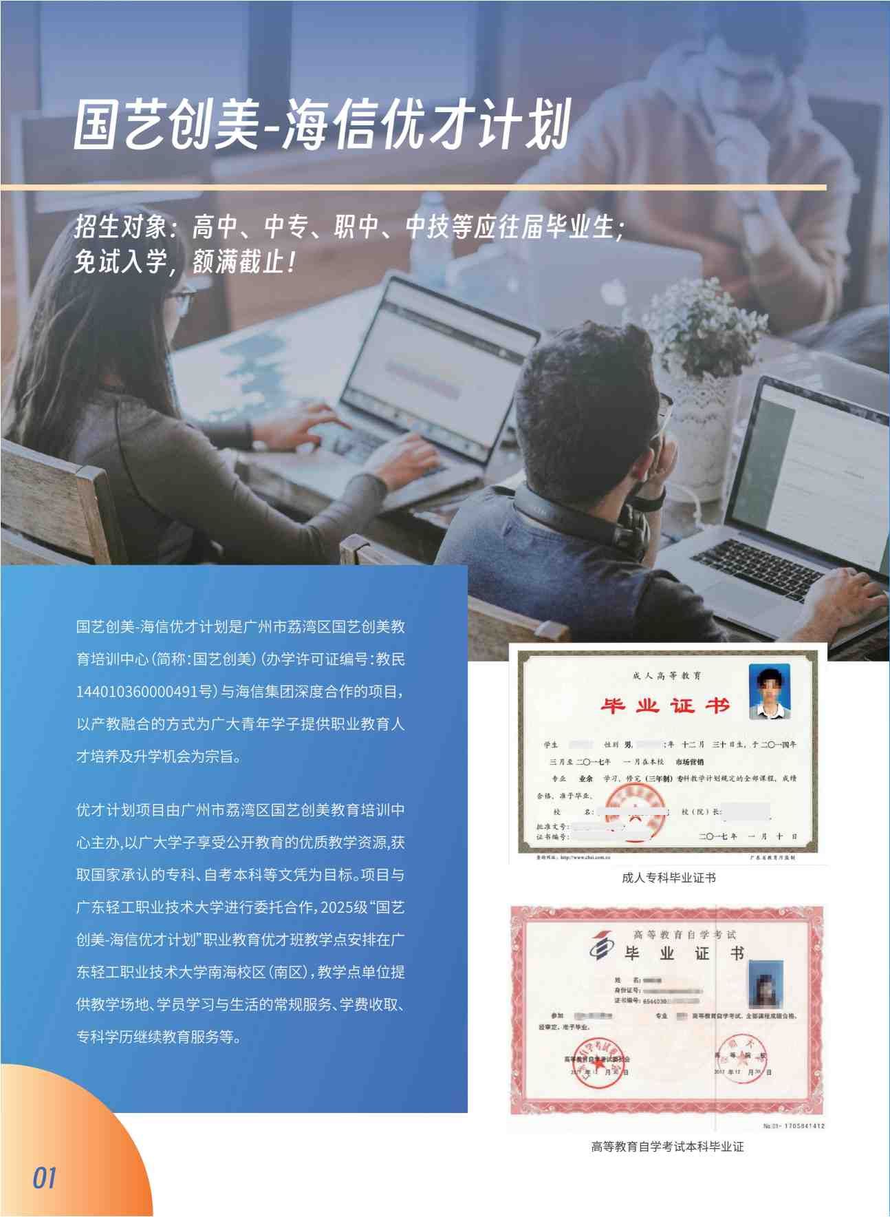 国艺创美·海信优才计划-职业教育优才班2025招生简章——广东轻工职业技术大学教学点