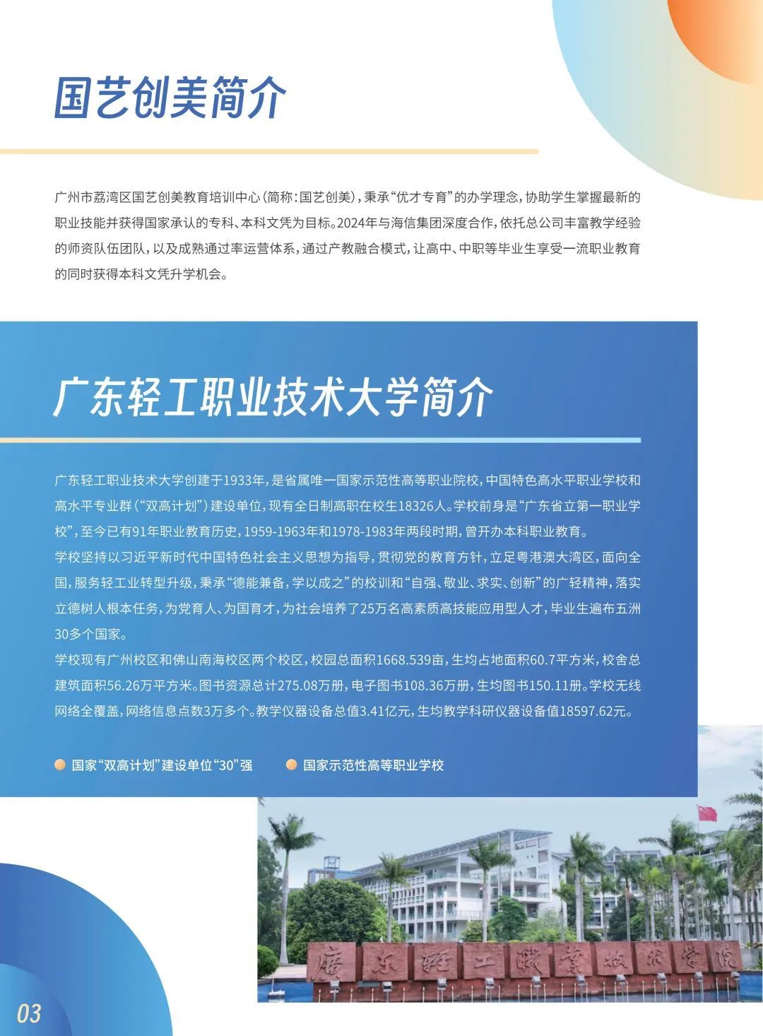 国艺创美·海信优才计划-职业教育优才班2024招生简章——广东轻工职业技术大学教学点