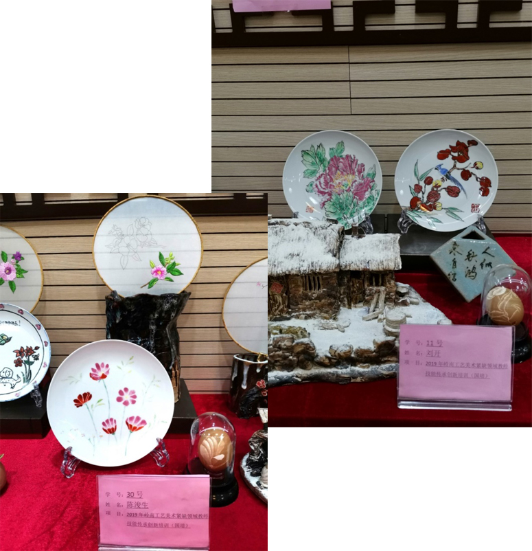 最后,经过30天的学习,学员在专业工艺美术大师的指导下完成了陶艺、蛋雕、广彩、广绣四个创作作品,并进行了学习成果汇报。其中不少学员的作品,得到大师的认可。