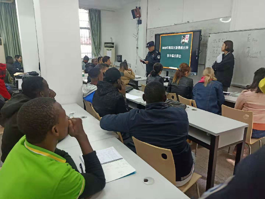 海珠区新港派出所警官为我校国际学生进行防诈骗宣讲