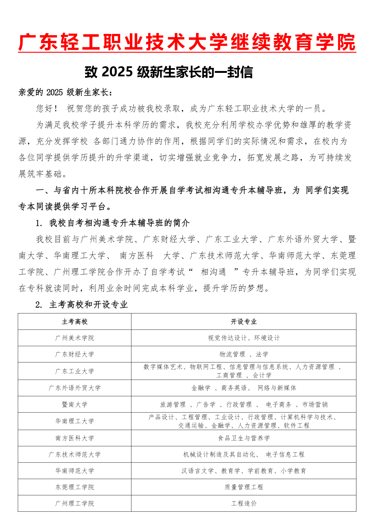致2025级新生家长的一封信