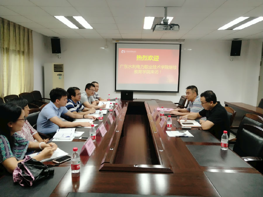 7月10日下午, 广东水利电力职业技术学院继续教育学院院长罗团忠携副院长唐海标等一行9人到我校南海校区进行工作交流,我校继续教育学院院长陆英杰,副院长尚喆等参加了交流会议。