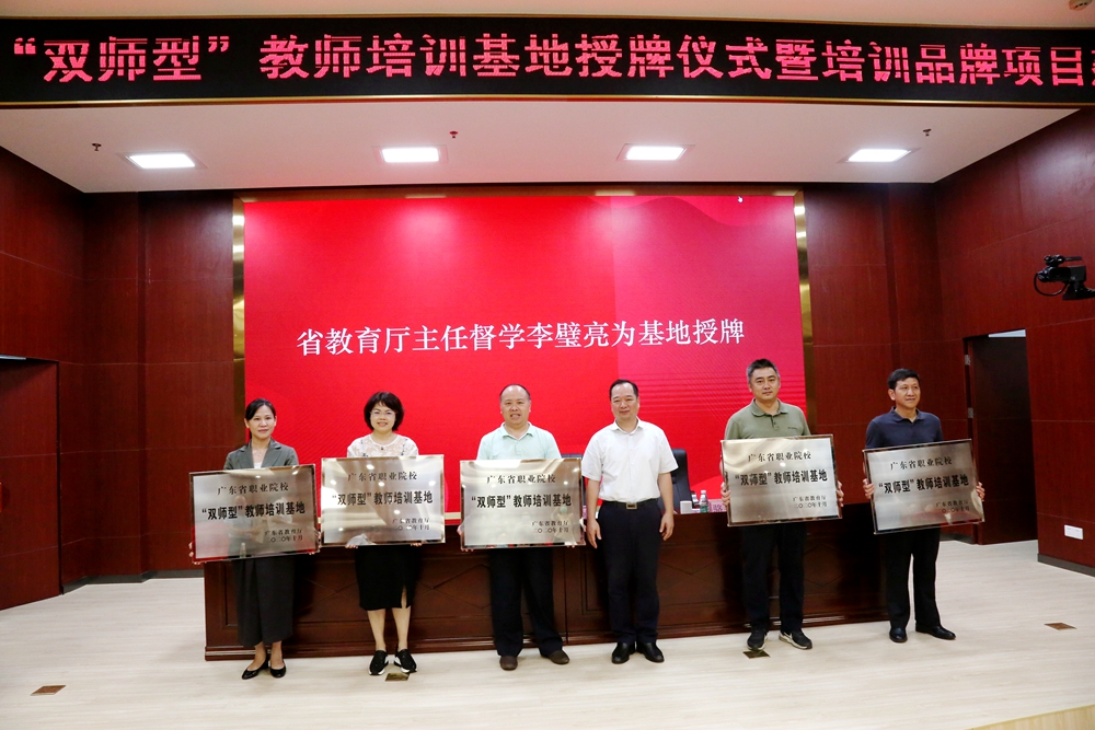 2020年10月16日上午,广东省教育厅主办的 “广东省职业院校‘双师型’教师培训基地授牌仪式暨品牌项目建设经验交流会”在广东技术师范大学隆重举行,继续教育学院陆英杰院长代表学校在授牌仪式上获授“广东省职业院校‘双师型’教师培训基地”牌匾。