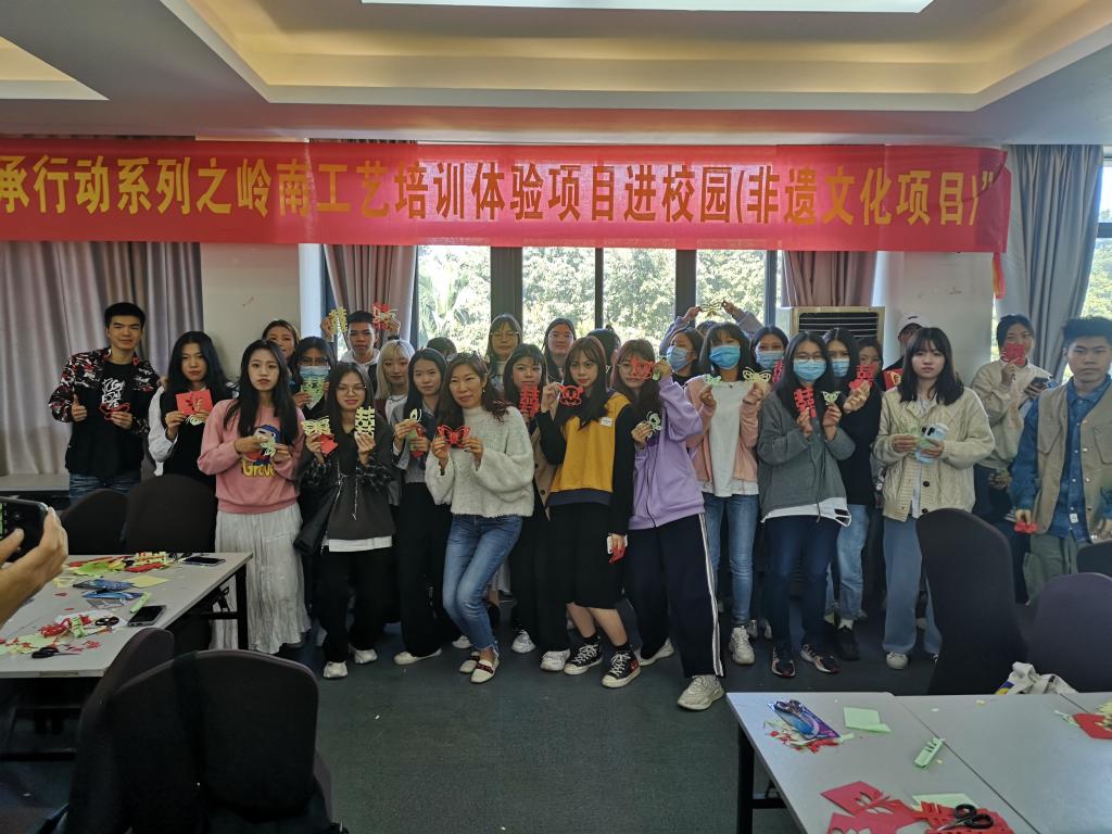 2020年11月28日—12月15日,我校和广州市轻工高级技工学校联合举办的2020年岭南文化传承行动系列之岭南工艺培训(非遗文化项目)圆满结束。本次培训分为四期,每期培训时长为半天。共有241名学员参与此次培训,分别为我校设计学院、轻化工学院、食品学院的在校生。