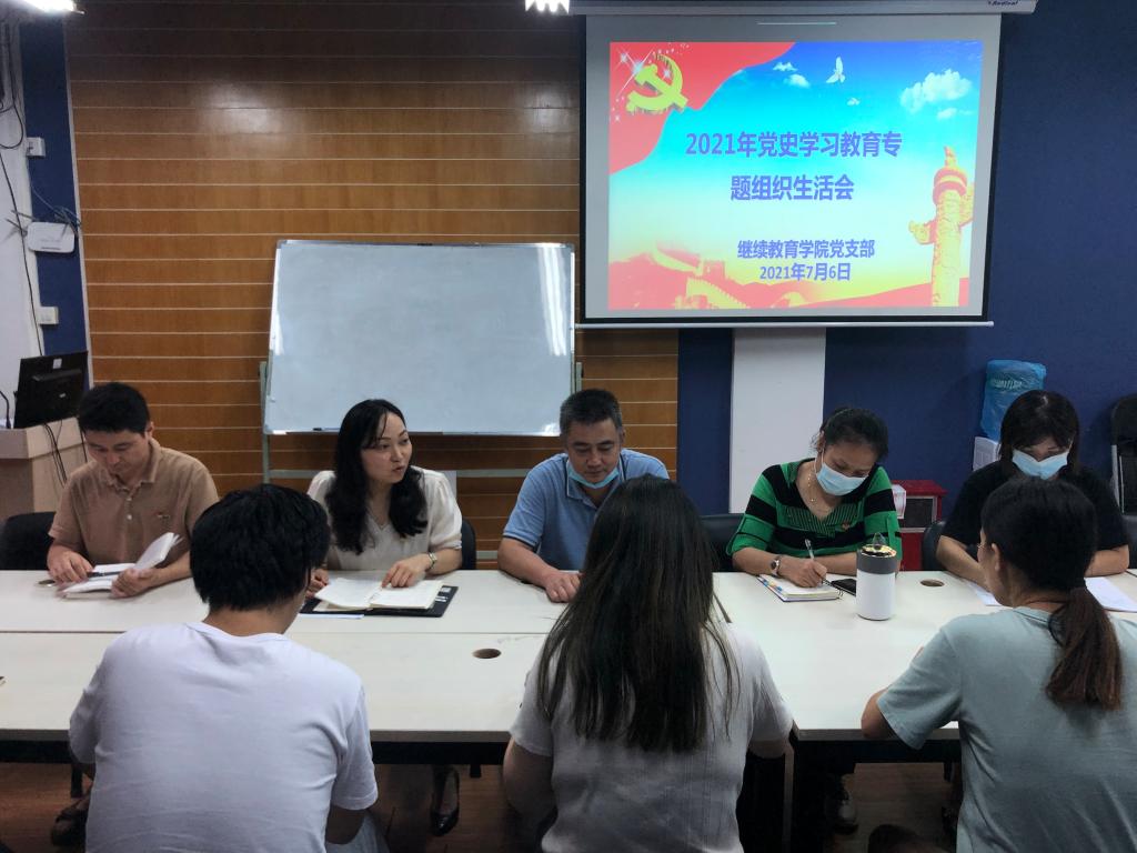 在中国共产党成立100周年之际,为有效推动党史学习教育深入开展,切实提高学习教育的针对性和实效性,继续教育学院党支部于2021年7月6日下午在广州校区继续教育学院35栋102课室组织召开了党史学习教育专题组织生活会。继续教育学院副院长、支部书记王瑶主持会议,全体党员、入党积极分子参加。