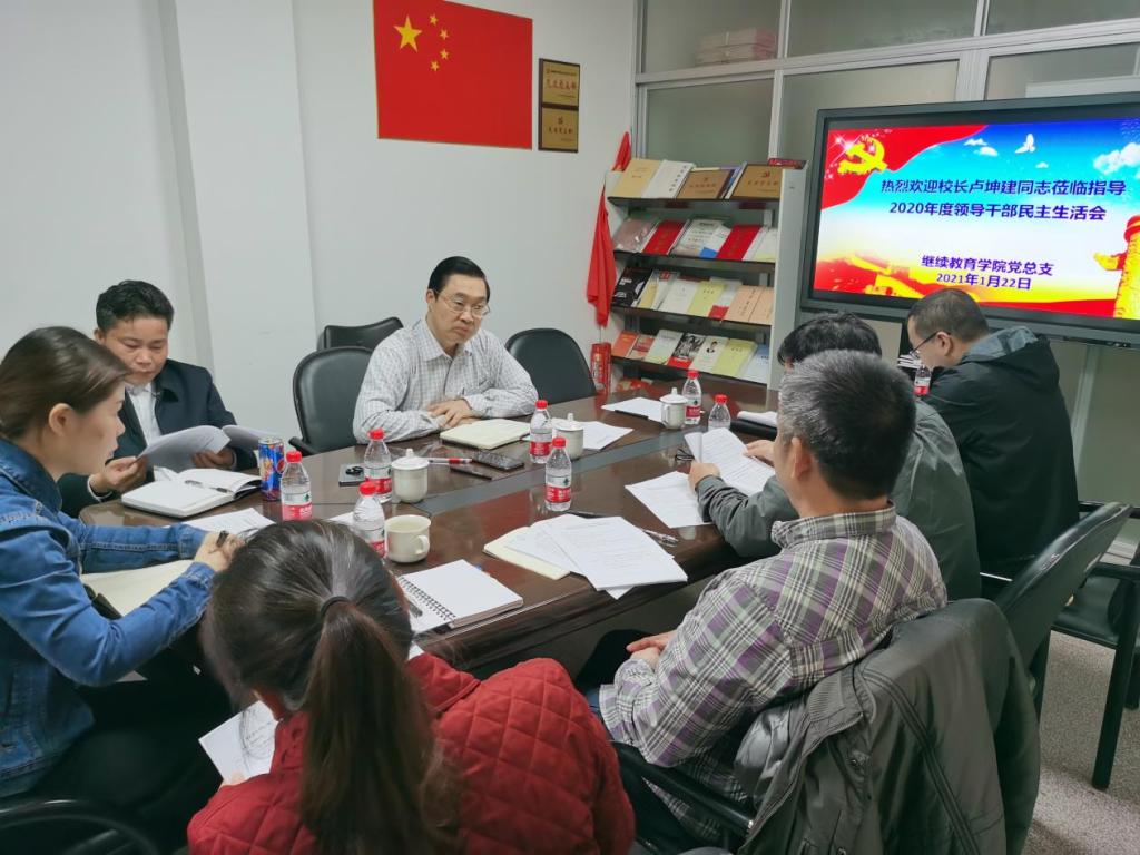 2021年1月22日下午,继续教育学院在广州校区会议室召开领导班子民主生活会。校长卢坤建、校长办公室主任张斌、继续教育学院党政领导班子和教职工代表参加了会议。民主生活会由学院党总支书记李先主持。