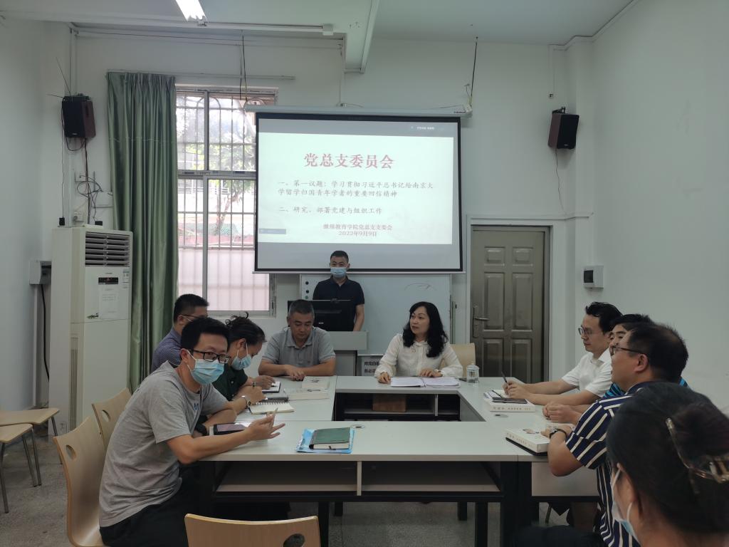 9月9日,继续教育学院党总支在广州新港校区继续教育学院103会议室召开党总支委员会议。