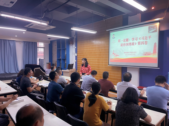 9月22日,继续教育学院党总支在继续教育学院102课室组织“第一议题”学习《习近平谈治国理政》第四卷。