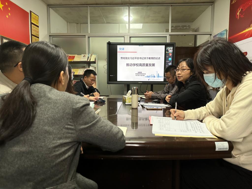 12月1日,继续教育学院党总支书记张佩宜以《贯彻落实习近平总书记关于教育的重要论述 推动学校高质量发展》为题,在学院103课室为党总支全体党员讲授专题党课。