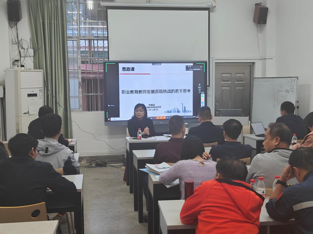 12月7日,继续教育学院党总支书记张佩宜以《职业教育教师发展面临挑战的若干思考》为题,在学院102课室为党总支全体教职工讲授思政课。