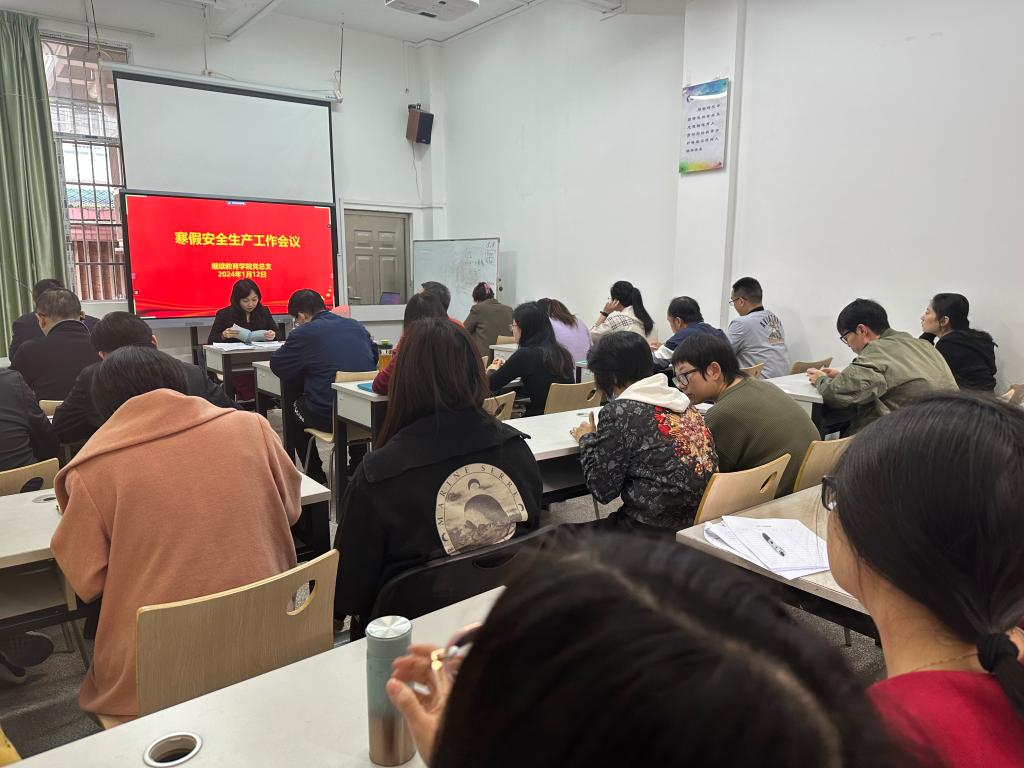 1月12日上午,继续教育学院党总支在学院103课室组织召开寒假安全生产工作会议暨全体教职工会议。