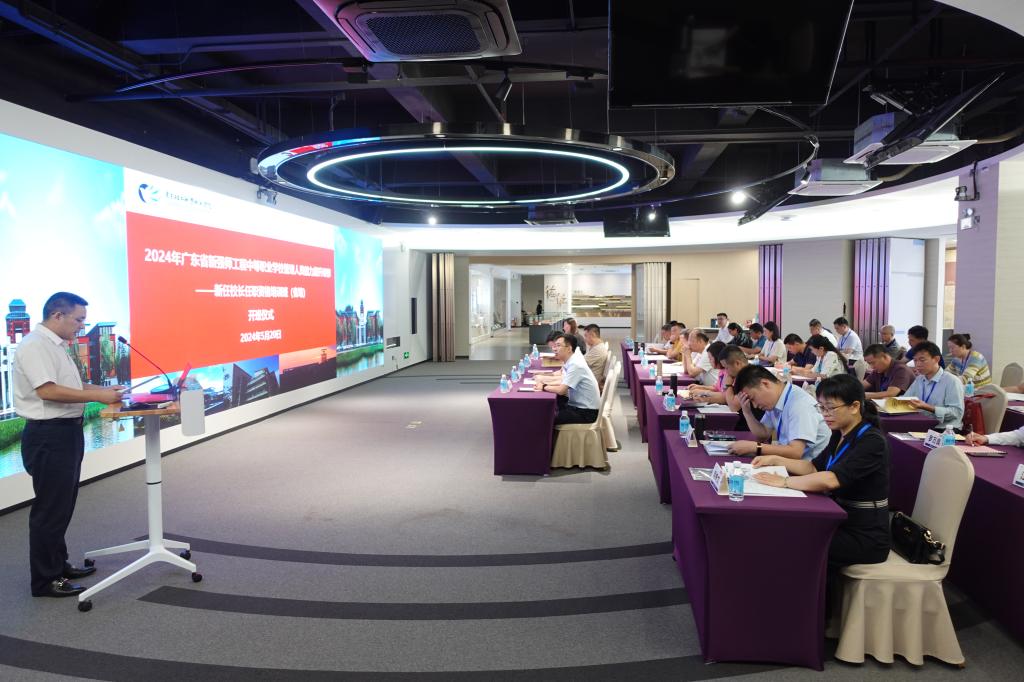 2024年5月20日,由广东轻工职业技术学院和联想集团共同承办的“2024年广东省新强师工程中等职业学校管理人员能力提升研修—新任校长任职资格培训班”开班仪式在广州校区第二实训楼多功能展示中心隆重举行。我校副校长官春平、继续教育学院院长陆英杰、副院长王瑶、联想教育南区经理吴洋、联想教育项目经理孟广晨以及来自全省14个地市的30位校长(正副书记、正副校长)出席了此次开班仪式。