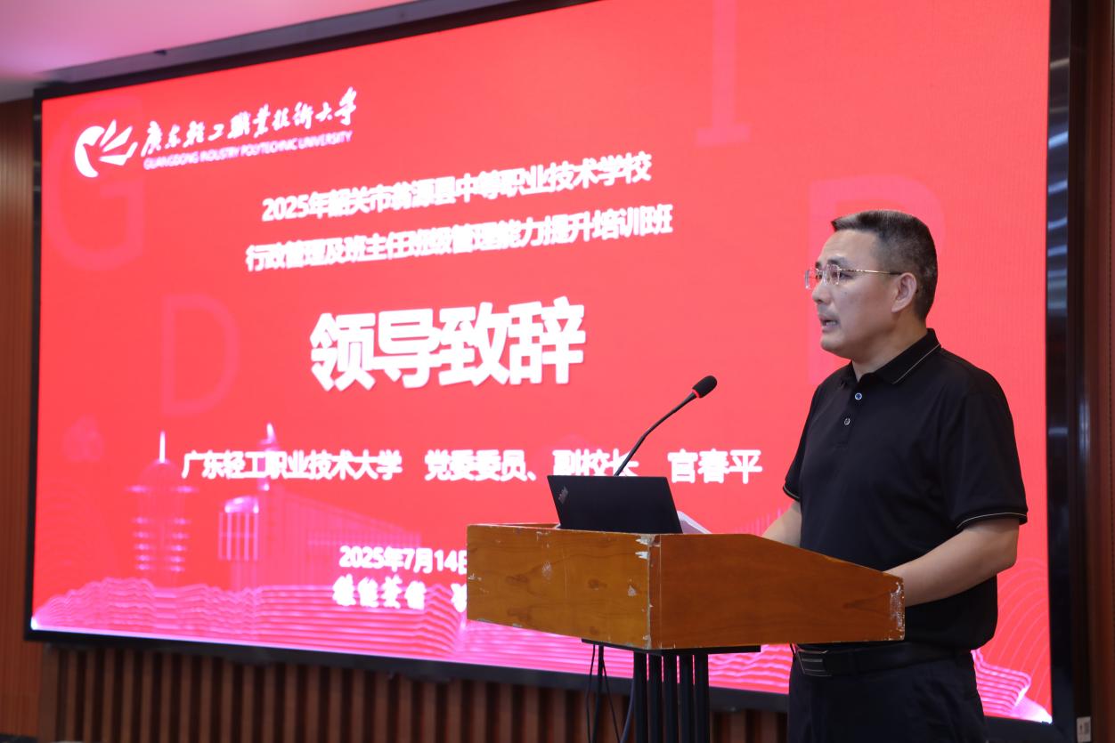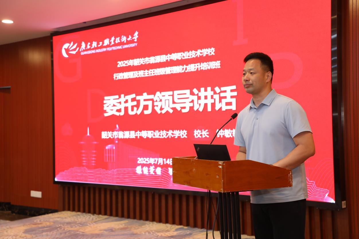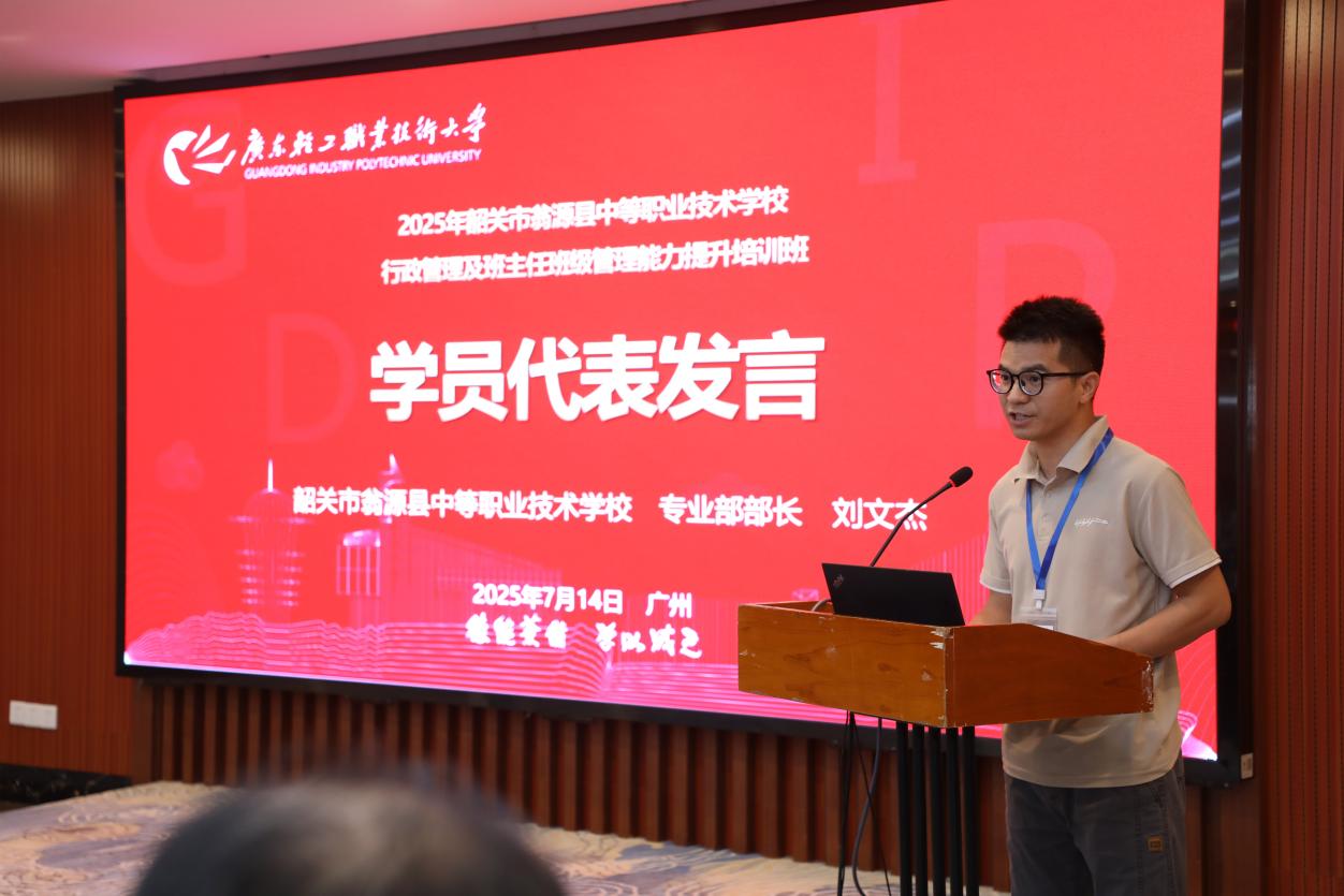 韶关市翁源县中等职业技术学校专业部部长刘文杰作为学员代表发言,他称培训内容精准满足学员需求,承诺珍惜本次学习的机会,让培训成果落地,为职教发展出力。