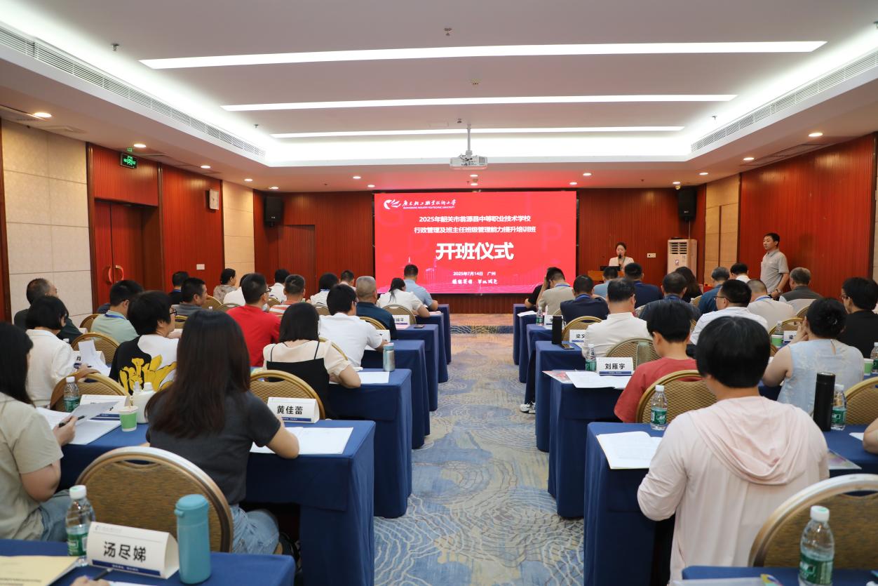 7月14日下午,2025年韶关市翁源县中等职业技术学校委托我校举办的“2025年韶关市翁源县中等职业技术学校行政管理及班主任班级管理能力提升培训班”开班仪式在华海宾馆3楼1号行政会议室隆重举行。韶关市翁源县中等职业技术学校校长钟敏敏、副校长梁立新、副校长吴海华、副校长许秀玲、其他46位参训老师,我校党委委员、副校长官春平、继续教育学院院长陆英杰、副院长王瑶、培训中心副主任陈海山等出席开班仪式。