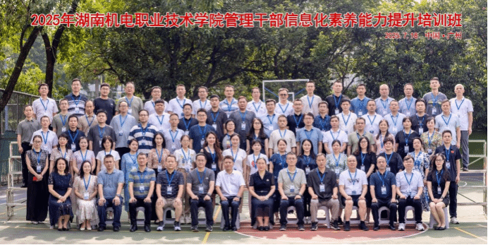 2025年7月21日上午,广东轻工职业技术大学新港校区第二实训楼商演中心气氛庄重而热烈,为期五天的2025年湖南机电职业技术学院管理干部信息化素养能力提升培训班在此圆满落下帷幕。81名来自湖南机电职院的管理干部顺利完成学习任务,满载收获,即将返程。
