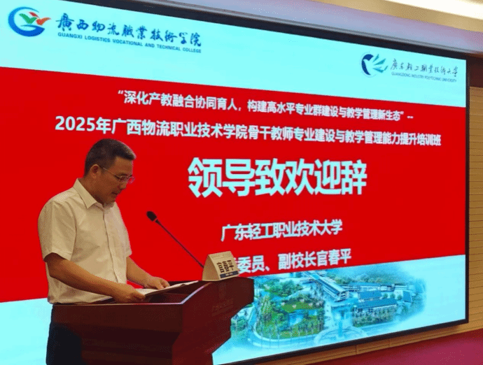 2025年8月23日上午,广西物流职业技术学院2025年骨干教师专业建设与教学管理能力提升培训班开班仪式在广州市总工会干部学校培训基地顺利举行。广西物流职业技术学院校长朱海强,我校党委委员、副校长官春平,继续教育学院院长陆英杰、副院长王瑶及广西物流职业技术学院50名骨干教师共同出席。仪式由继续教育学院林亚文老师主持。