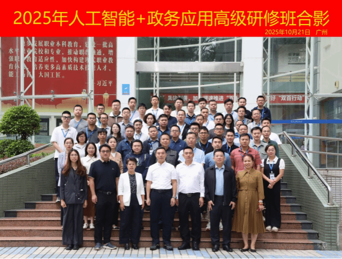 近日,由广东省人力资源和社会保障厅主办、我校承办、广东省新南方职业培训学院协办的2025年“人工智能+政务应用”高级研修班在我校顺利举行并圆满结束。来自全省各行政事业单位的55名学员完成了为期数天的系统学习与交流,为进一步提升政务数字化水平奠定了坚实的人才基础。